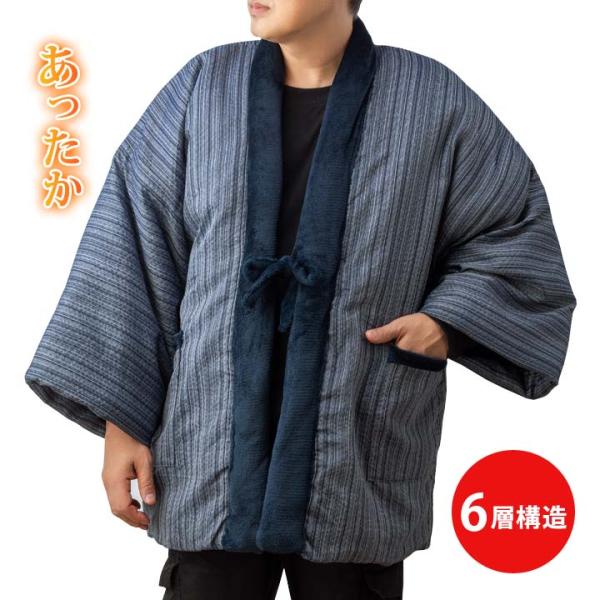 メンズ 綿入れ わた入り 半纏 袢纏 どてら 丹前 ルームウェア 防寒着 中綿 暖か しじら織 ボア 寒さ 冷え ポケット付