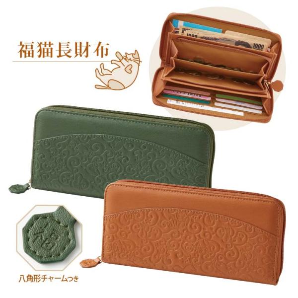 財布 長財布 唐草模様 猫 ねこ 猫グッズ 猫柄 八角チャーム 縁起が良い レディース メンズ 札入れ 小銭入れ カード入れ ポケット ラウンドファスナー 福猫長財布