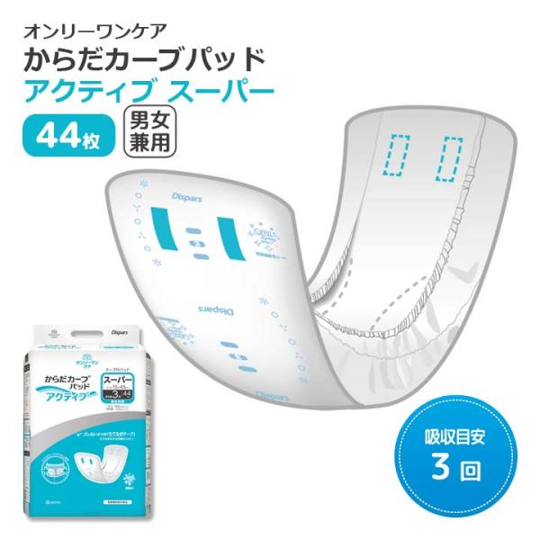 失禁対策 男女兼用 尿モレ パッド 尿取り 下着に貼れる 介護用品 安心 簡単交換 消臭 送料無料 オンリーワンケアからだカーブパッド アクティブ スーパー44枚入