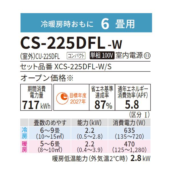 (室内機品番:CS-225DFL-W 室外機品番:CU-225DFL)