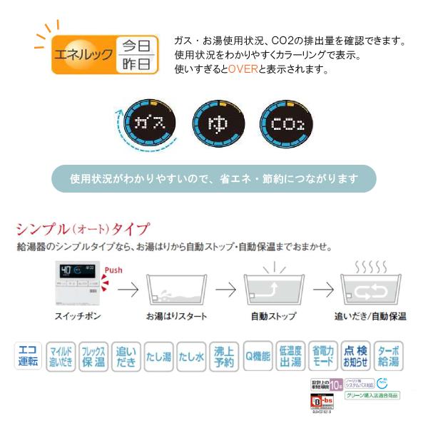 ・「エネルック」ボタンはガス・お湯の使用状況、CO2の排出量を確認できます。