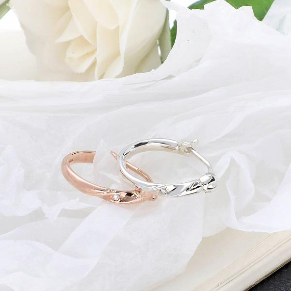 ペアピアス 刻印 名入れ シルバー925 Sweet Rose カップル おそろい シンプル ダイヤモンド プレゼント