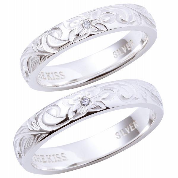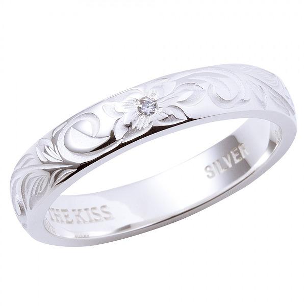 伝統的なハワイアン彫りを施したペアリング。ハイビスカスモチーフは「信頼」、波を表すスクロールモチーフは「永遠に途切れることのない愛」という意味が込められています。模様の一部を白く残すことで、シャープな彫りのイメージを柔らかい印象にしてくれます。リングの中心には、「ふたりの愛がより深まりますように」という意味のあるダイヤモンドを1石セットしました。こちらの商品は単品での販売です。(1点分の価格表記となっております)THE KISS ザ・キッス シルバーペアリング