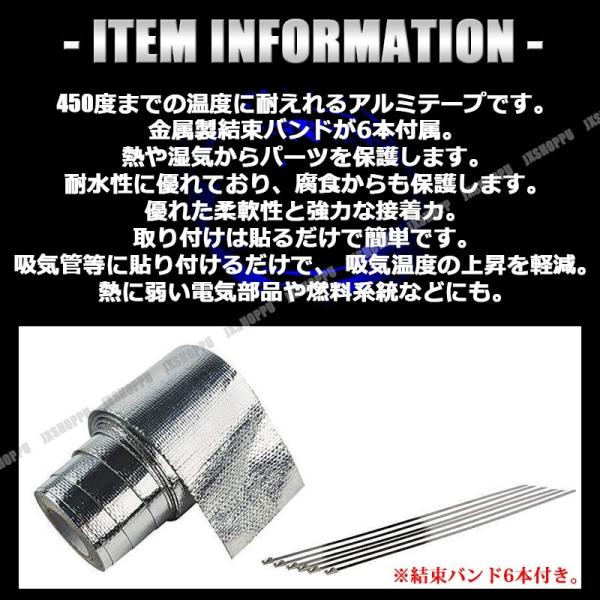 耐熱テープ 5m×50mm 450℃ 結束バンド6本付き アルミテープ エンジンルーム ドレスアップ 給気 吸気 排気 効率アップ 防水 温度 カスタム 車 バイク 汎用