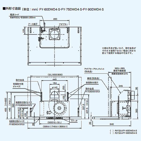 ●吊戸棚対応奥行き寸法:375mm±10mm