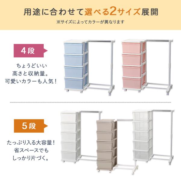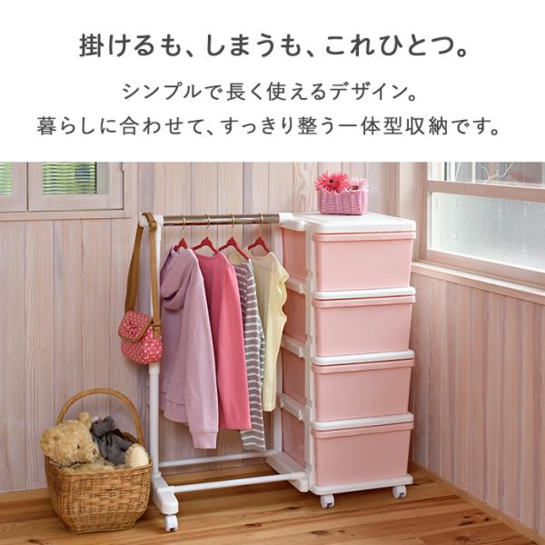 収納チェスト 4段 おしゃれ キャスター付き 収納ケース 収納ボックス 衣類収納 カラーシーズユニット4段 パイプハンガー付 幅83.5cm奥行42cm高さ86.2cm