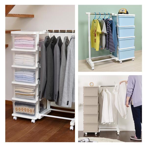 収納チェスト キャスター付き 収納ケース 収納ボックス 衣類収納 カラーシーズユニット4段パイプハンガー付 幅83.5cm奥行42cm高さ86.2cm(爆買)