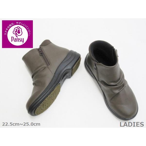 SALE / Pansy パンジー 4691 防水 ダブルファスナー 4E ゆったり ゴム素材 グリップ力 ショート Laブーツ BR 22.5cm〜25.0cm<20%OFF>