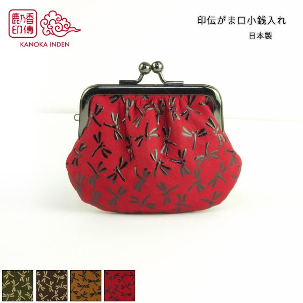 印伝 小銭入れ 鹿乃香印傳 本革 赤 がま口 財布 コインケース とんぼ ミニ財布 コンパクト 赤 がま口工房mami