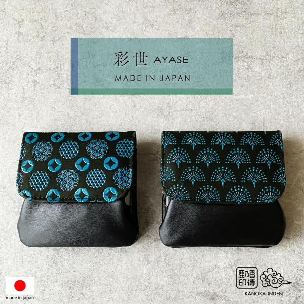 印伝 がま口 和モダン おしゃれがま口 伝統工芸 鹿革 漆 レディース ターコイズブルー スリム財布 青 和風 印傳 小紋 孔雀 七宝 麻の葉 鱗