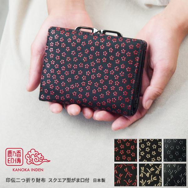 印伝 がま口財布 鹿乃香印傳 二つ折り財布 レディース スクエア がま口 本革 小銭入れ コンパクト 折財布 がま口工房mami