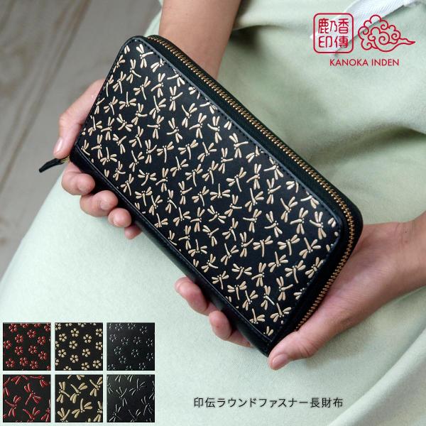 印伝 長財布 ラウンドファスナー 財布 レディース 大容量 メンズ 本革 とんぼ 小桜 鹿乃香印傳 がま口工房mami