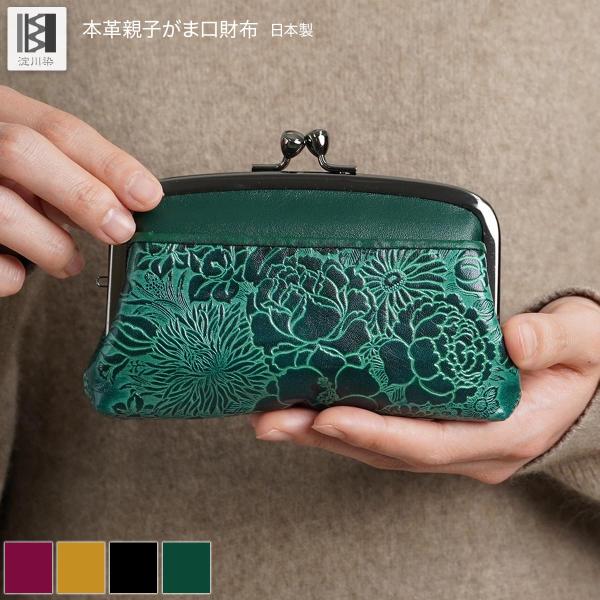 がま口 財布 レディース 本革 日本製 レザー 親子がま口 カードケース 小銭入れ 総花 淀川染 がま口工房mami