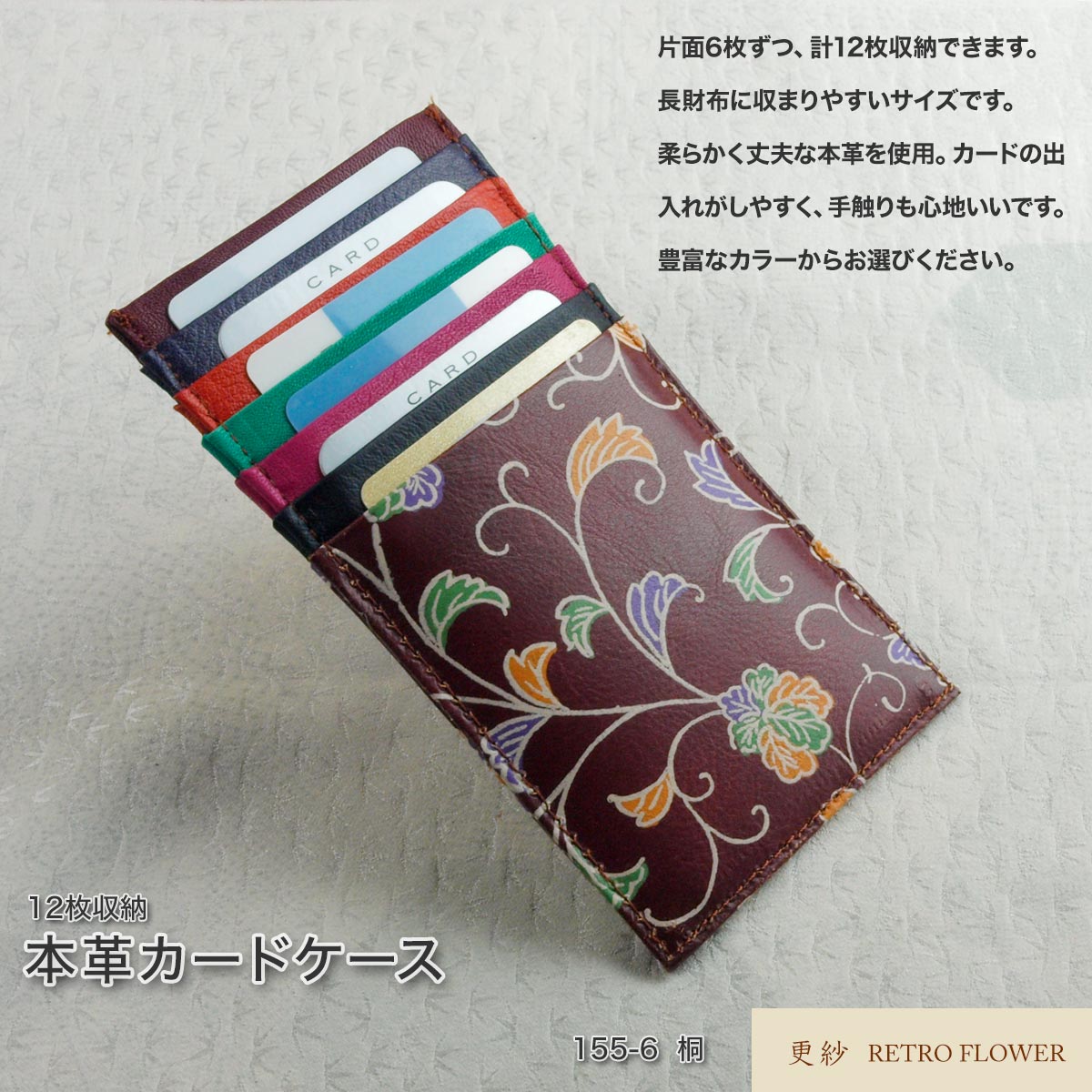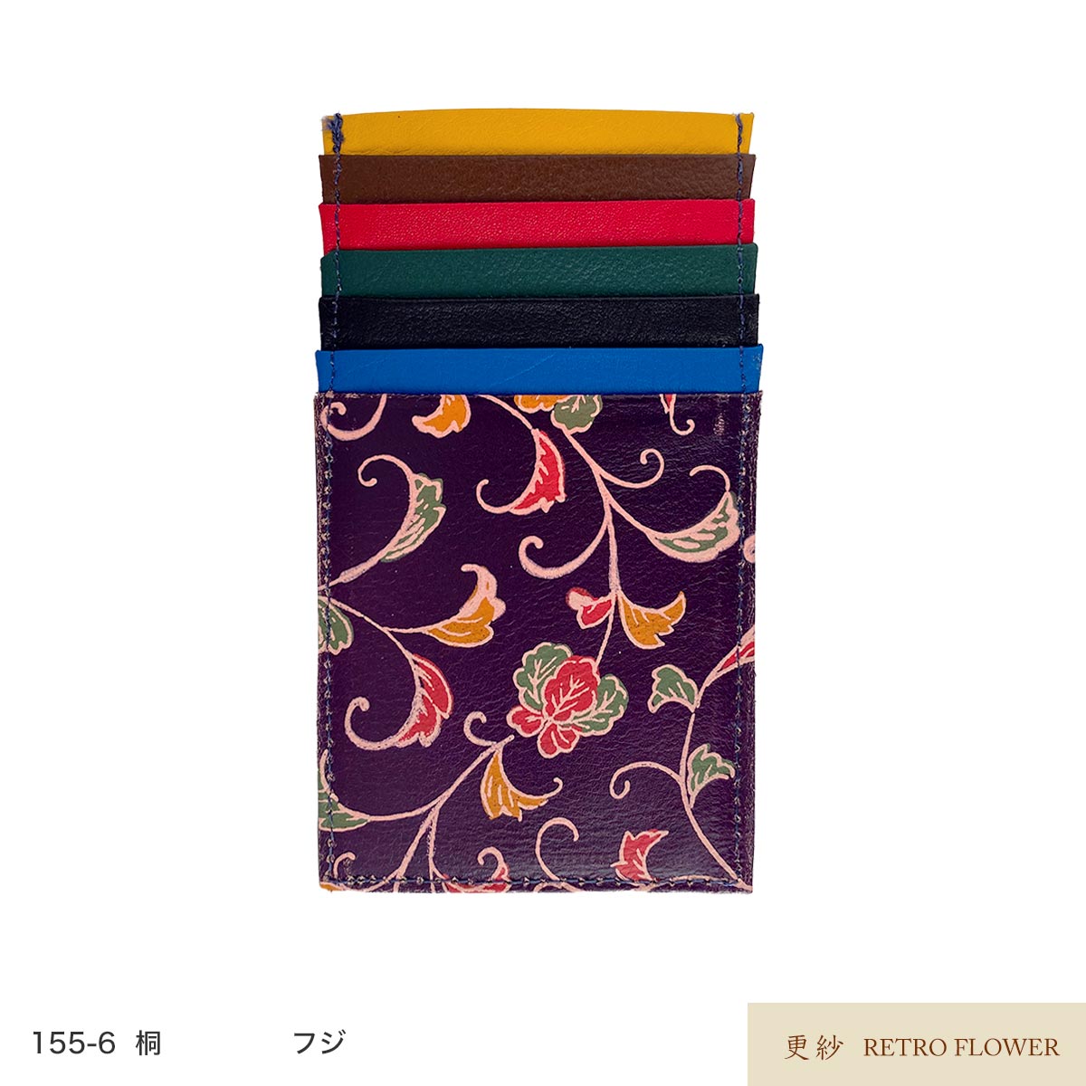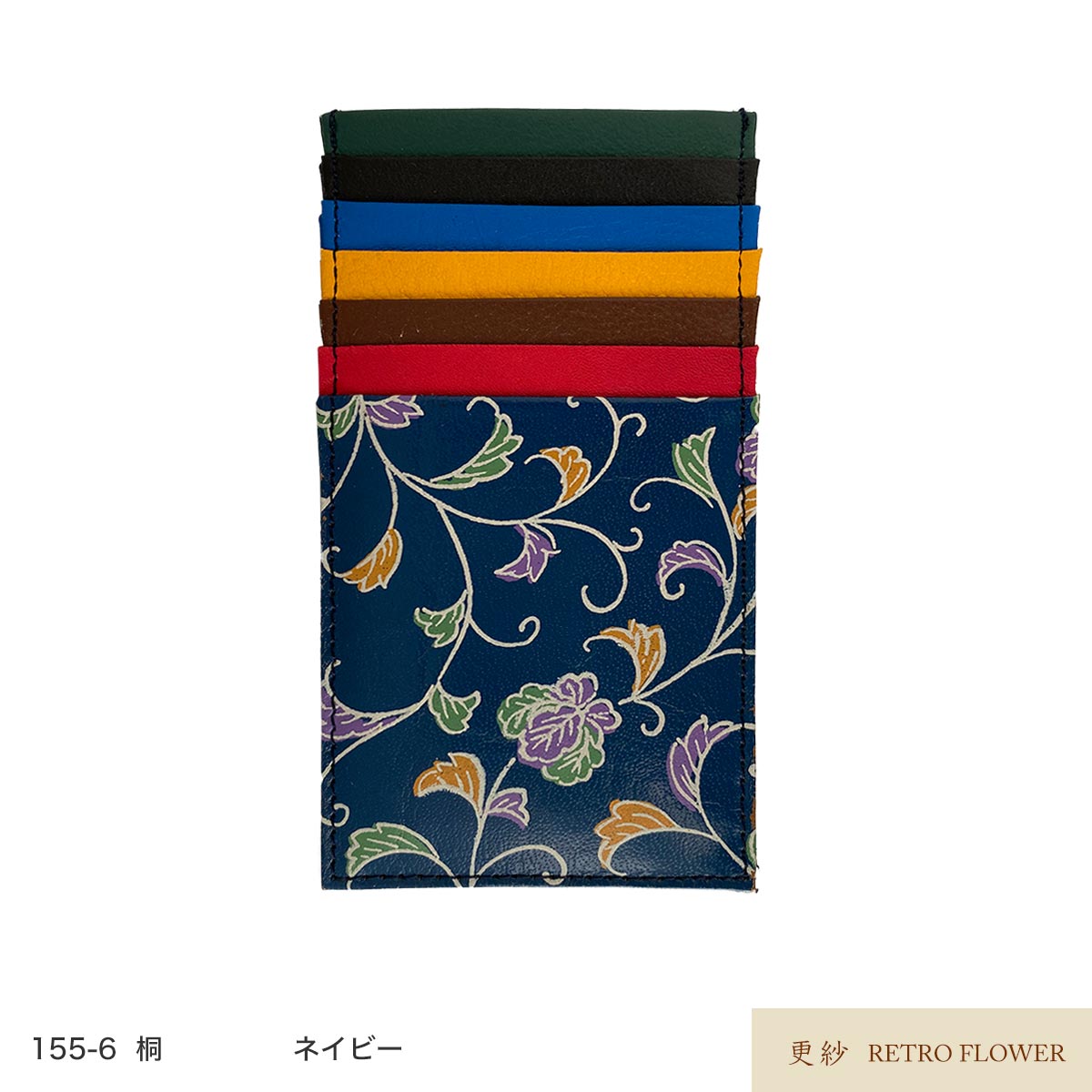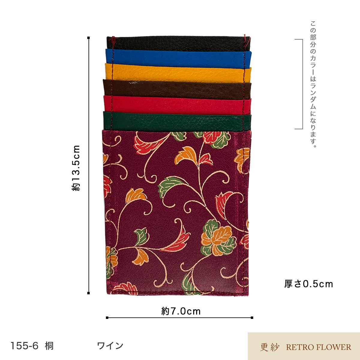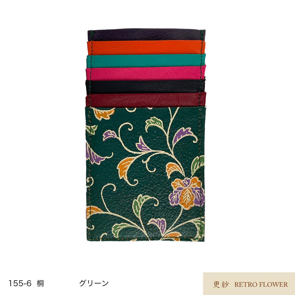 カードケース 本革 インナーカードケース 長財布 縦型 日本製 カード入 レディース 花柄 桐 更紗 縦型 がま口工房mami