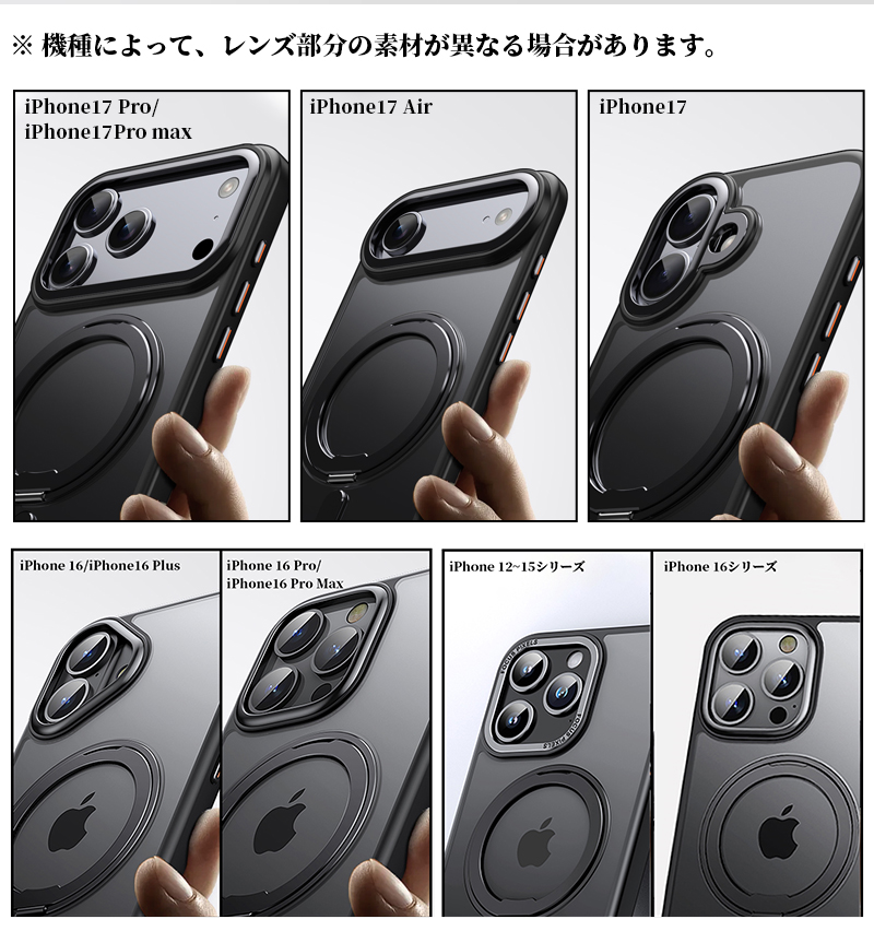 iPhone17 ケース iPhone Air ケース magsafe ケース iphone 17e 16e ケース リング付き iPhone17 Pro Max クリアケース 耐衝撃 iphone15 14 13 pro max ケース
