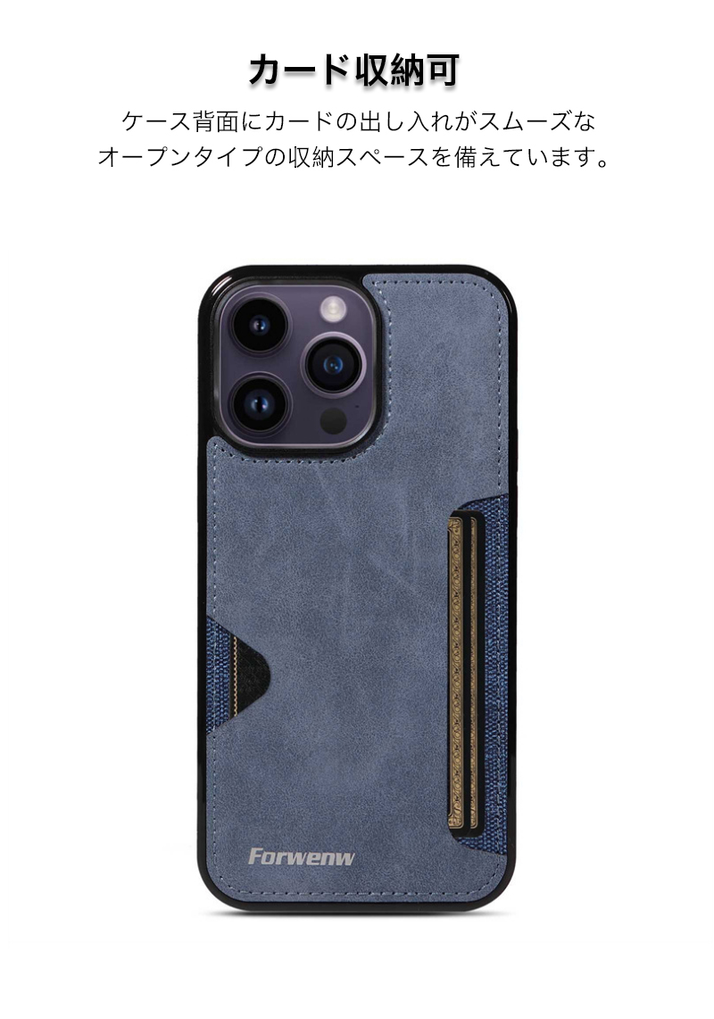 iPhone ケース 背面 カード収納 スマホケース アイフォン ケース 背面ポケット 1枚 2枚 レザー調 磨砂 皮 革 耐衝撃 衝撃吸収 薄型 スリム 軽い 軽量 手帳型以外 おしゃれ 大人 かわいい シンプル メンズ レディース ビジネス ブランド Forwenw プレゼント ギフト 誕生日 贈り物 爆買