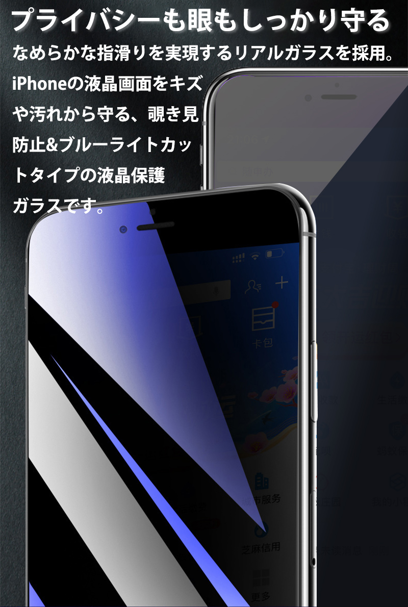 アイホン フィルム ガラスフィルム 保護フィルム 覗き見防止 ブルーライトカット 9H硬度 強化ガラスフィルム 全面保護 日本旭硝子製素材 衝撃吸収 飛散防止 気泡レス 指紋防止 目の疲れを軽減 液晶保護フィルム 爆買