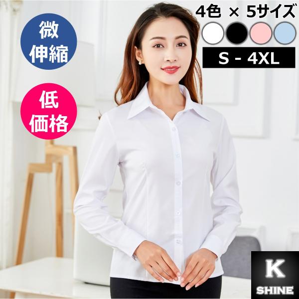 【2枚で10%クーポン】 シャツ レディース 長袖 ドレスシャツ ワイシャツ 女性 微ストレッチ 微伸縮 通勤 オフィス 白 黒 大きいサイズ [Lシャツ(L)]