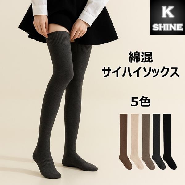 【3足で10%クーポン】 サイハイ ハイソックス レディース 綿 コットン 女性 ニーハイ オーバーニー 太もも 暖かい 靴下 [綿混サイハイソックス]