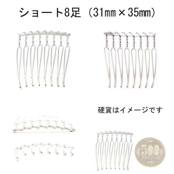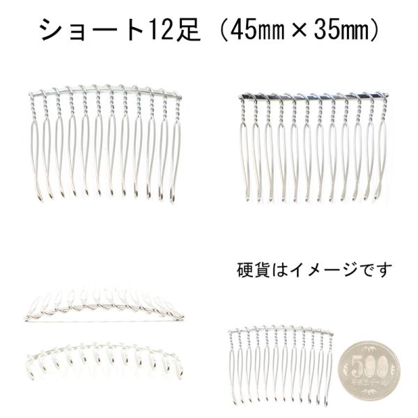 ヘアコーム×10点セット 銀色 小型 サイズ選択(5本足 8本足 10本足 12本足 15本足 ショート ロング)日本製 【髪飾り ビーズ パール 金具 手芸 ハンドメイド】