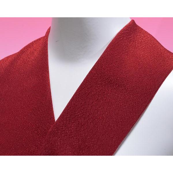 特価 微狭幅 半衿 高級化繊 二越縮緬 落ち着いた赤 無地