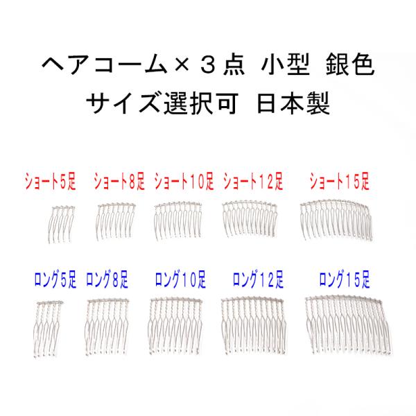 ヘアコーム×3点セット 銀色 小型 サイズ選択(5本足 8本足 10本足 12本足 15本足 ショート ロング)日本製 【髪飾り ビーズ パール 金具 手芸 ハンドメイド】