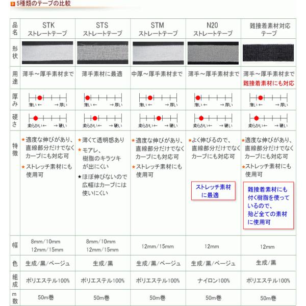 【12mm幅×50m巻 : STKアイロン接着テープ】 柔らかいテープ 伸びない生地・ストレッチ素材の両方に使用可 ≪メール便OK≫ 色:生成、ベージュ、黒