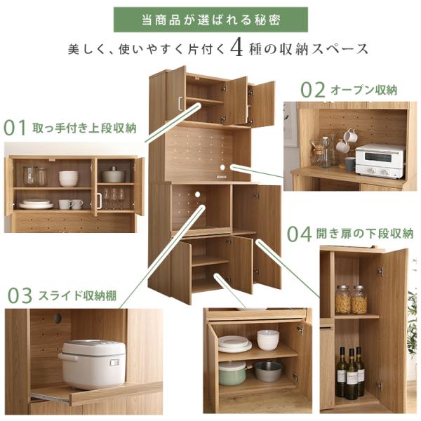 食器棚 キッチンボード 90 スライド オーク レンジボード 高さ180cm キッチンキャビネット 食器棚 スリム 家電収納 キッチン収納 レンジ台 白
