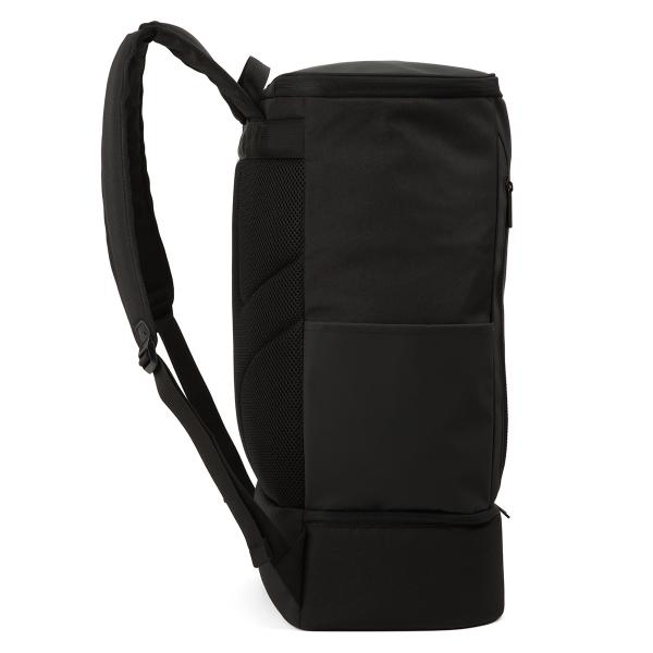 前面にはファスナーポケット、側面には500mlペットボトルを収納できるオープンポケット、メインルームにはPCポケットを搭載。内部のPCポケットは15.6インチPCを収納可能です。