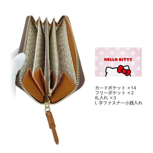 ブラック 黒 クロ 茶 ブラウン 実用的 機能的 大容量 大きめ レザー キレイめ 牛革 本革 革財布 kitty キティちゃん キャラクター サンリオ 高級 大人 かわいい お洒落 ラッピング無料 ラッピング袋無料 ラッピング対応