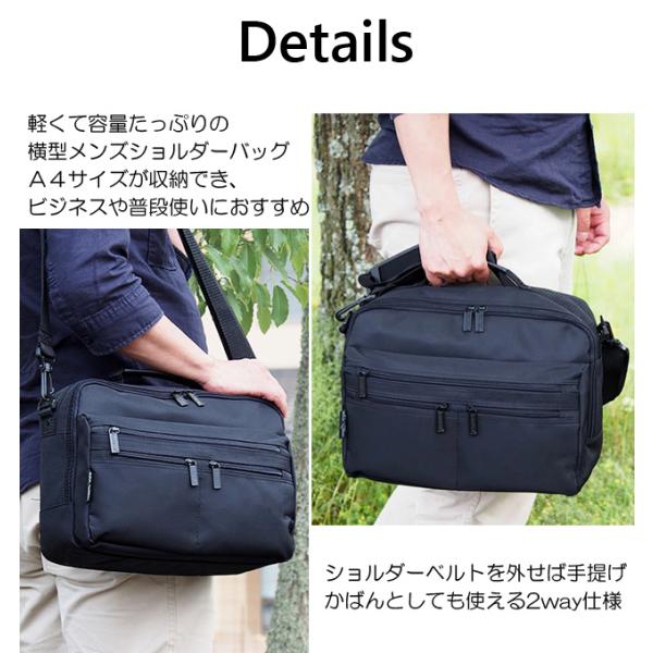 軽くて容量たっぷりの横型メンズショルダーバッグ
