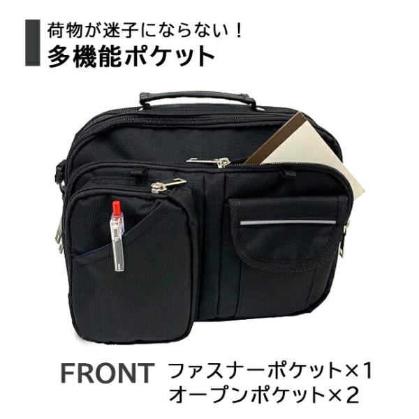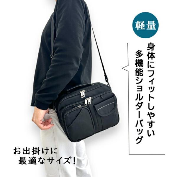 ショルダーバッグ メンズ 斜めがけ 2way 軽量 コンパクト 通勤 リフレクタ―付き A5 撥水 多機能ポケット 手持ち 大容量 ブラック 3401