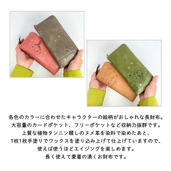 オーク グリーン 緑 ピンク ナチュラル ベージュ 茶 ブラウン 実用的 機能的 大容量 大きめ レザー MOOMIN ムーミン スナフキン リトルミイ ニョロニョロ カジュアル キレイめ 牛革 本革 革財布 レザー 北欧 ラッピング無料 ラッピング袋無料 ラッピング対応