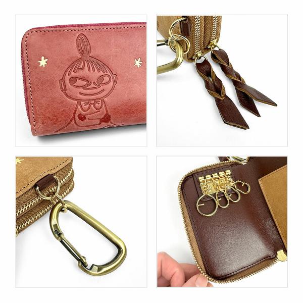 オーク グリーン 緑 ピンク ナチュラル ベージュ 茶 ブラウン 実用的 機能的 レザー MOOMIN ムーミン スナフキン リトルミイ ニョロニョロ カジュアル キレイめ 高級感 エレガント 牛革 本革 革 レザー 窓付き クリア 北欧 4連キーリング 4連キー 4連 ラッピング無料 ラッピング袋無料 ラッピング対応
