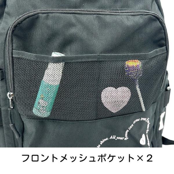 ブラック 黒 クロ ピンク 桃 パープル 紫 ミント 緑 サックス 水色 青 ハート柄 ブラントロゴ 自由の女神 お名前ラベル ネームタグ ファスナー開閉 A4 19リットル チェストベルト付き 腰ベルト付き
