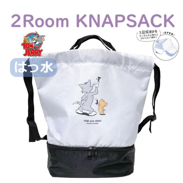 トムとジェリーナップサック 小学校 女の子 ナイロン 撥水 体操服入れ 体操着入れ プールバッグ 水着入れ おしゃれ 2層 2ルーム ナップ 128593