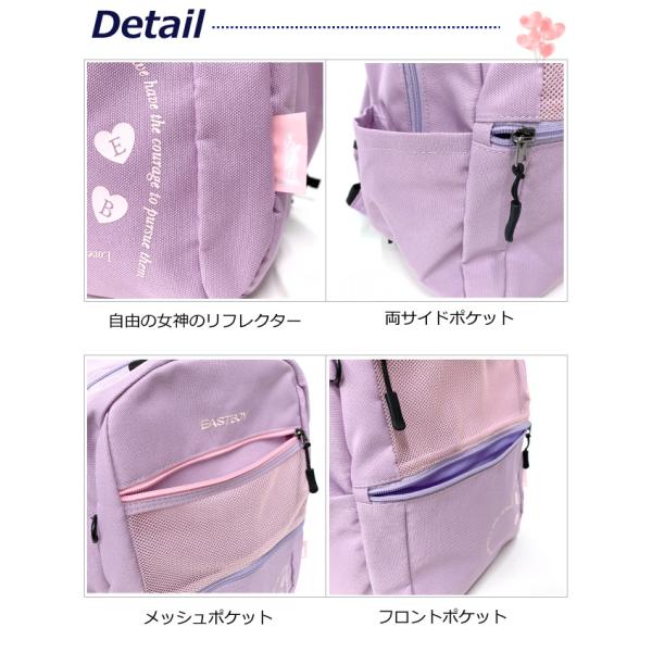 リュック キッズ 女の子 子供 ジュニア 小学生 オシャレ かわいい 15l 女子 リュックサック デイパック バックパック 小学校 小学校低学年 小学校高学年 通学 通塾 習い事 学童 遠足 修学旅行 林間学校 黒 水色 緑 ピンク 紫 イーストボーイ EAST BOY 15リットル eba97 a4サイズ収納 ブランド イーストボーイリュック バッグ リフレクター 反射材 チェストベルト 誕生日プレゼント クリスマスプレゼント