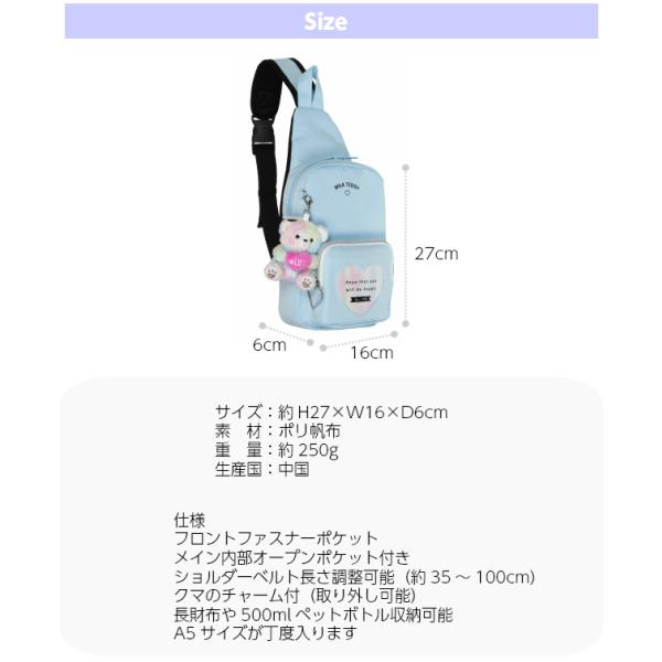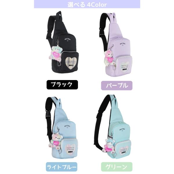 ボディバッグ キッズ 女子 黒 紫色 水色 くま グッズ ワンショルダー 斜めがけ ボディーバッグ おしゃれ MILK TEDDY ハートテディ ボディバック sle-641