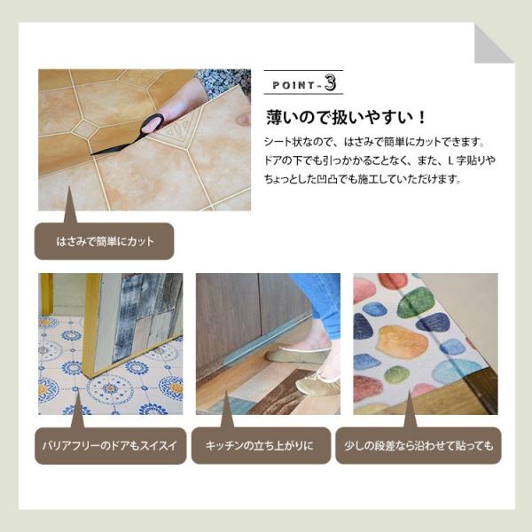 貼ってはがせる フロア キッチン 玄関 シート キッチンマット 木目 ヴィンテージ タイル ナチュラル モザイク 玉石 ヘリンボーン レトロ パッチワーク フェイク レザー ハラコ テラコッタ お手入れ簡単 賃貸 リフォーム 模様替え 1m単位 切売 壁紙屋本 舗 ポイント利用