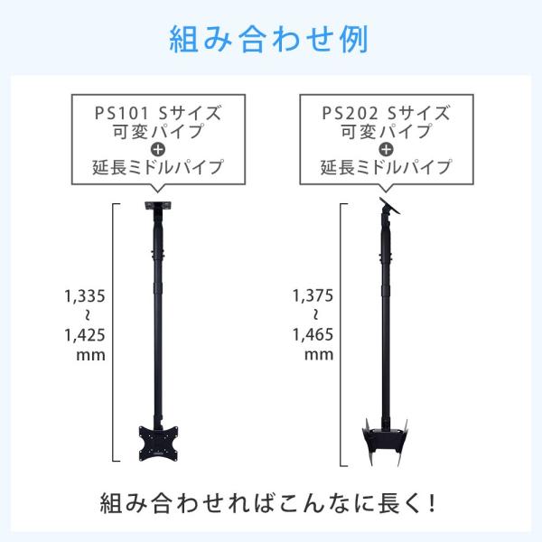 TVセッターハングPSシリーズに対応する延長用ミドルパイプ