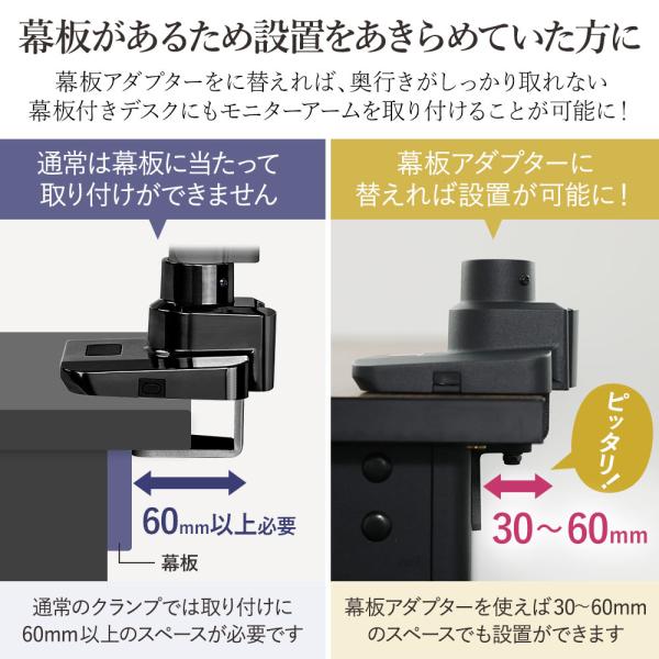 快適ワークのモニターアームLS112が狭い幅でも設置可能に 快適ワークのモニターアームLS112専用幕板アダプター