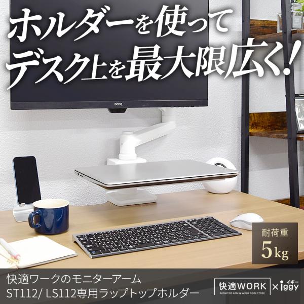 快適ワークのモニターアームLS112/ST112専用のノートPCホルダー デッドスペースを有効活用でさらに快適に!