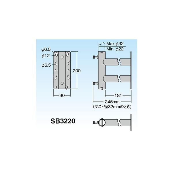 SB3220 マスプロ サイドベース(壁面取付用) 適合マスト22〜32mm