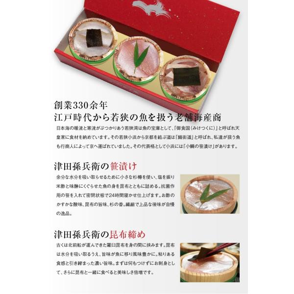 ギフト≪サーモン好きな方に≫ ギフト お取り寄せ【化粧箱入り半樽(85g)×3個】小鯛の笹漬け・のど黒昆布締め・ふくいサーモン昆布締め【NE】
