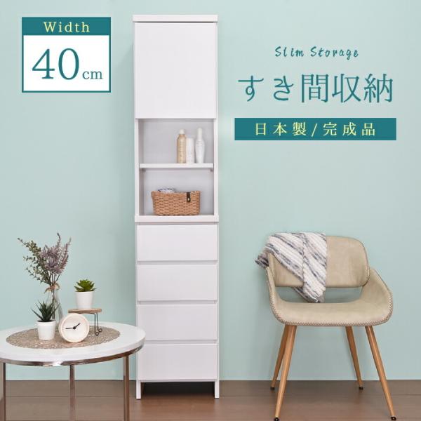 すき間収納 ランドリー収納 すき間家具 幅40 奥行30 ホワイト 白 脱衣所 洗面所 大川家具 キッチン収納 ランドリーラック 「才:9」