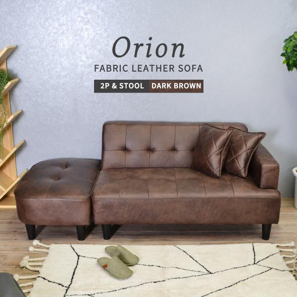 ソファー 2人掛け コンパクト 合皮 ソファ オットマン付き ローソファー おしゃれ ダークブラウン オリオン 2Pソファ スツール 「才:19」