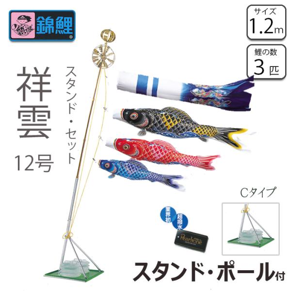 鯉のぼり 錦鯉 スタンドセット 祥雲12号 Cタイプセット ロープ/矢車/ポール/スタンド/水袋付き ベランダ用 節句用品 パールトーン加工 ウーリーサテン