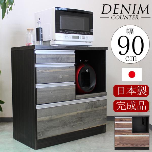 キッチン収納 キッチンカウンター 日本製 完成品 カウンター 90カウンター 90レンジ台 レンジボード スライドカウンター モダン