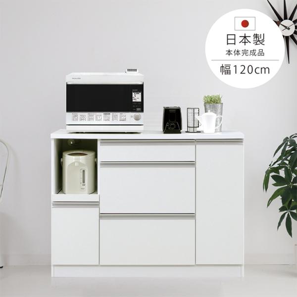 キッチン収納 キッチンカウンター カウンター 日本製 120カウンター 120レンジ台 レンジボード キッチン収納 北欧 おしゃれ 木製 ホワイト ブラウン 完成品