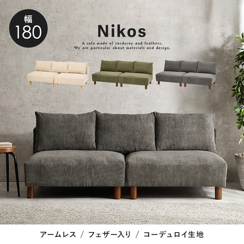 ソファ 2人掛け ソファー 3人掛け 北欧 アームレスソファ おしゃれ 2人掛けソファ 3人掛けソファ 2人掛けソファー 3人掛けソファー フェザー 羽毛 幅180 ニコス